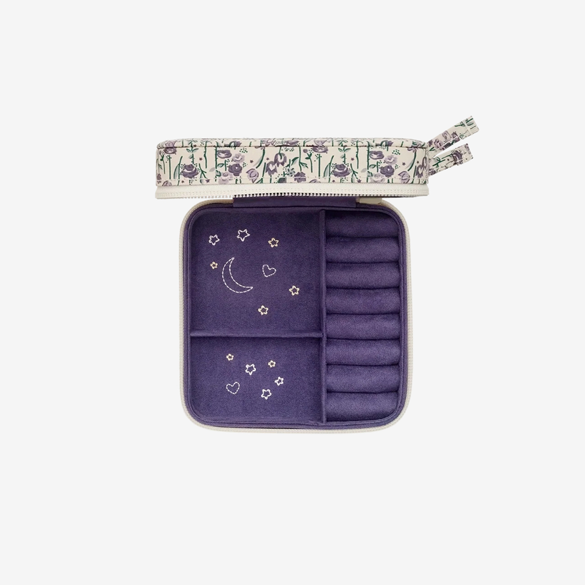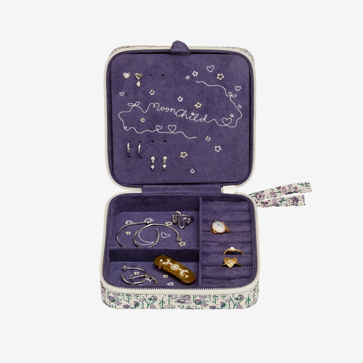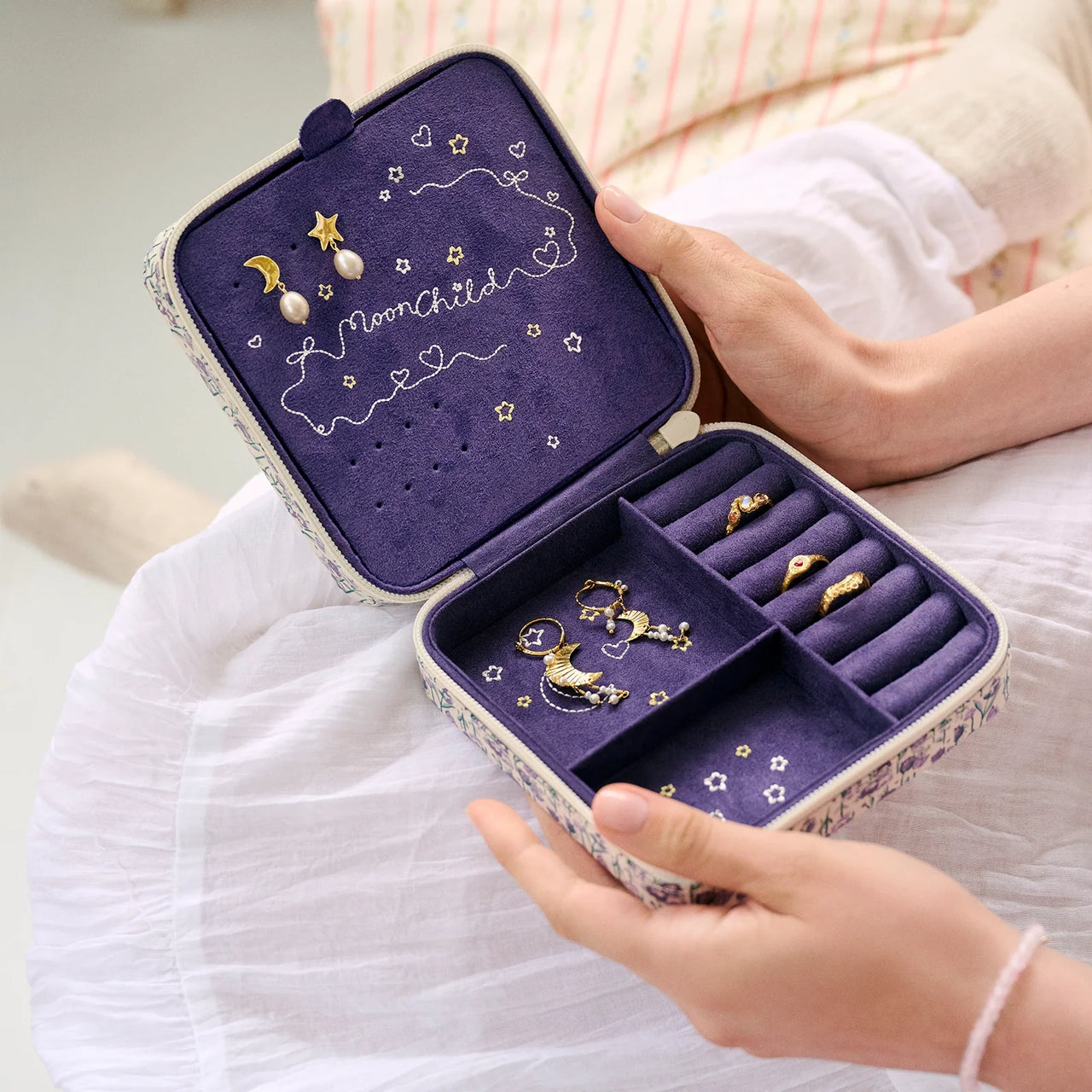 Elegant and timeless in its design, Amelia Jewellery Box keeps your favorite pieces safe and beautifully organized. The heart-shaped embroidery at the center adds a personal touch, making the box as meaningful as the treasures it holds.