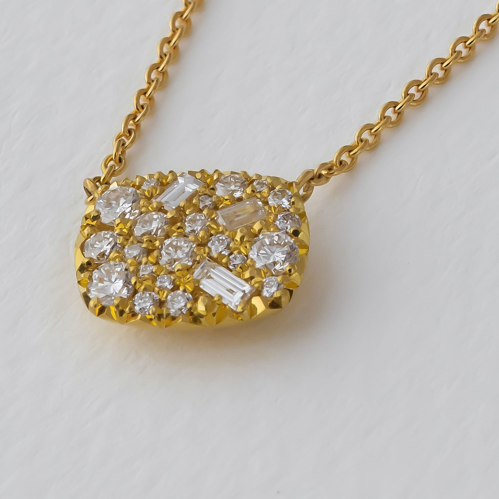 Necklace in recycled 18k gold with antique rose cut diamonds