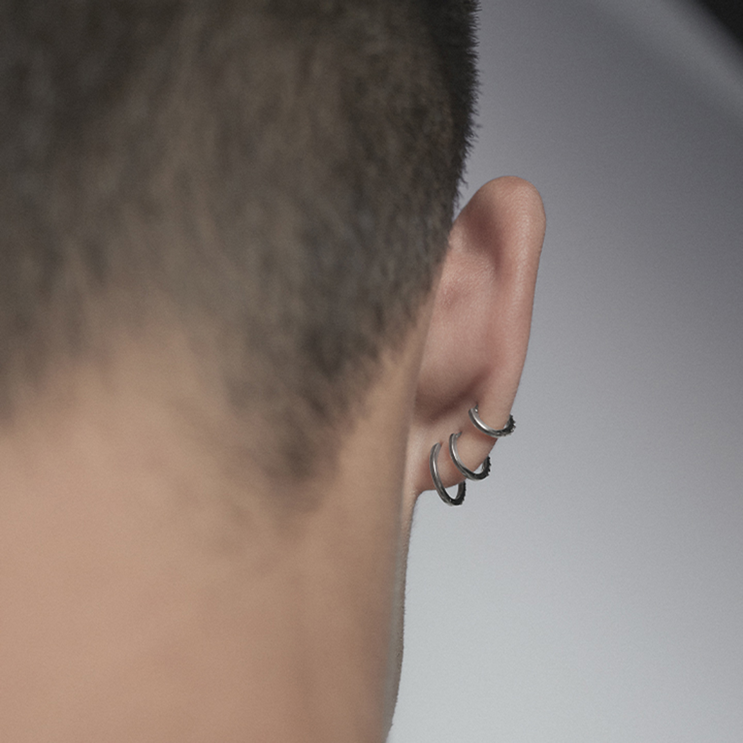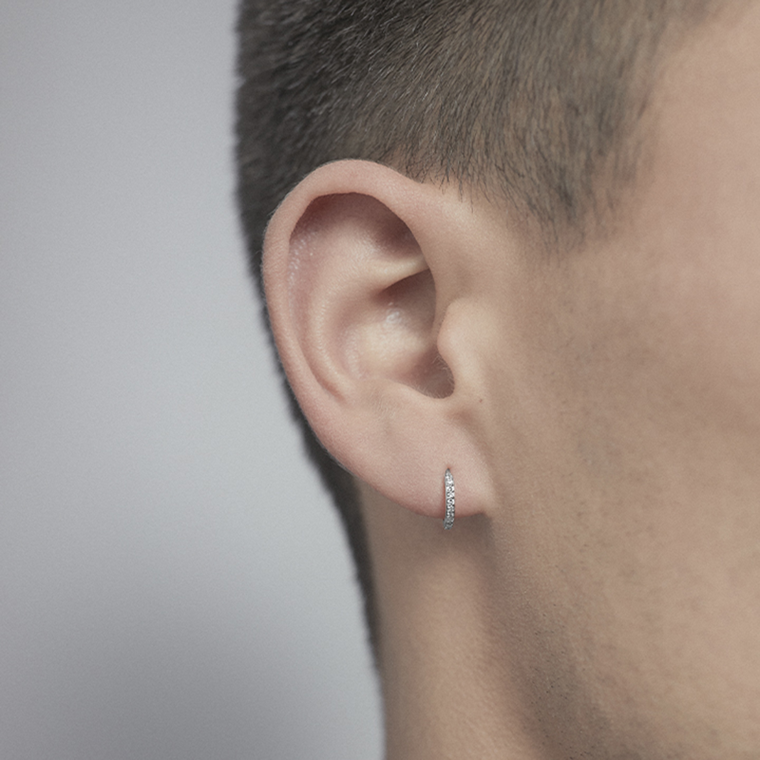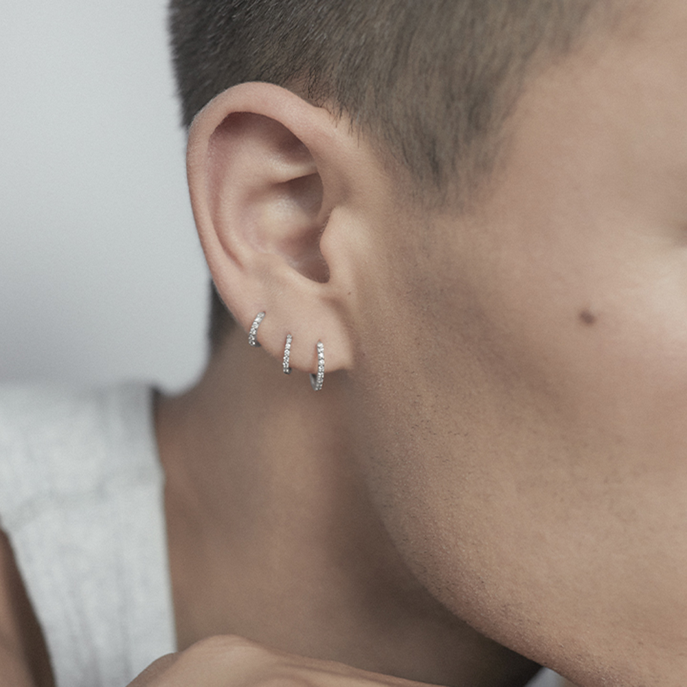 Huggie in recycled 14k white gold with 5 lab-grown diamonds. Total 0.025ct