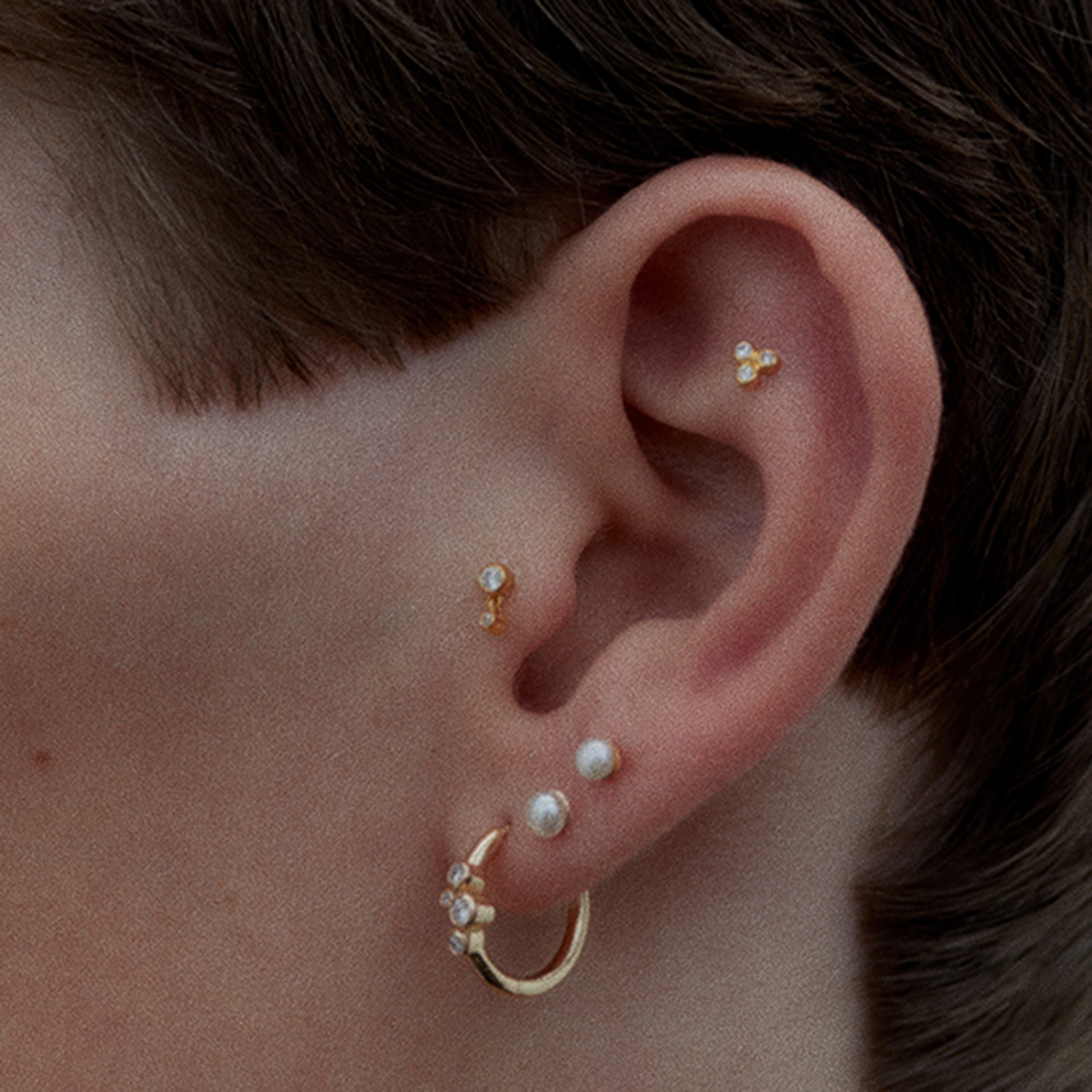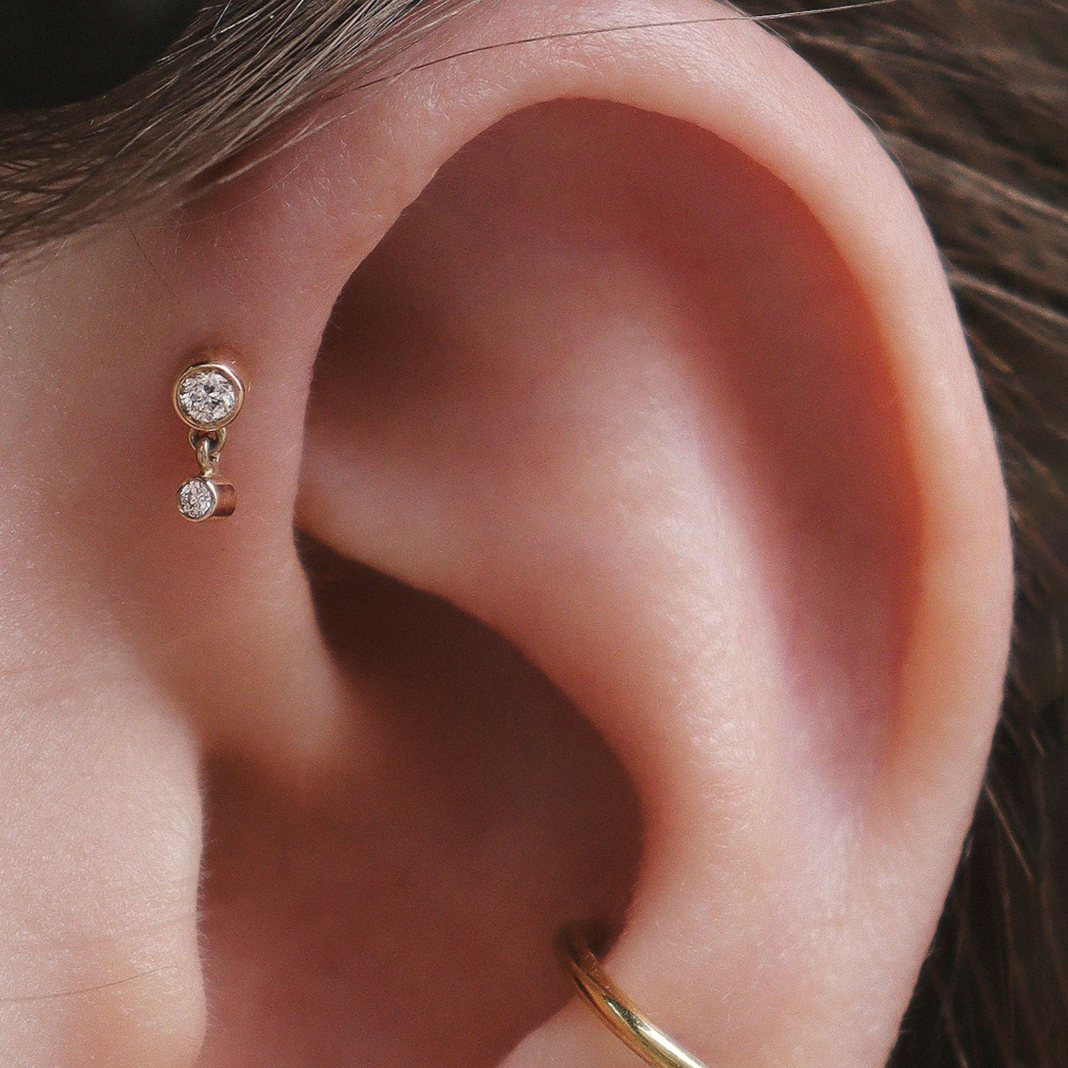 Stud in recycled 14k gold with two (1x 1.2mm 1x 1.8mm) lab-grown diamonds FG/SI