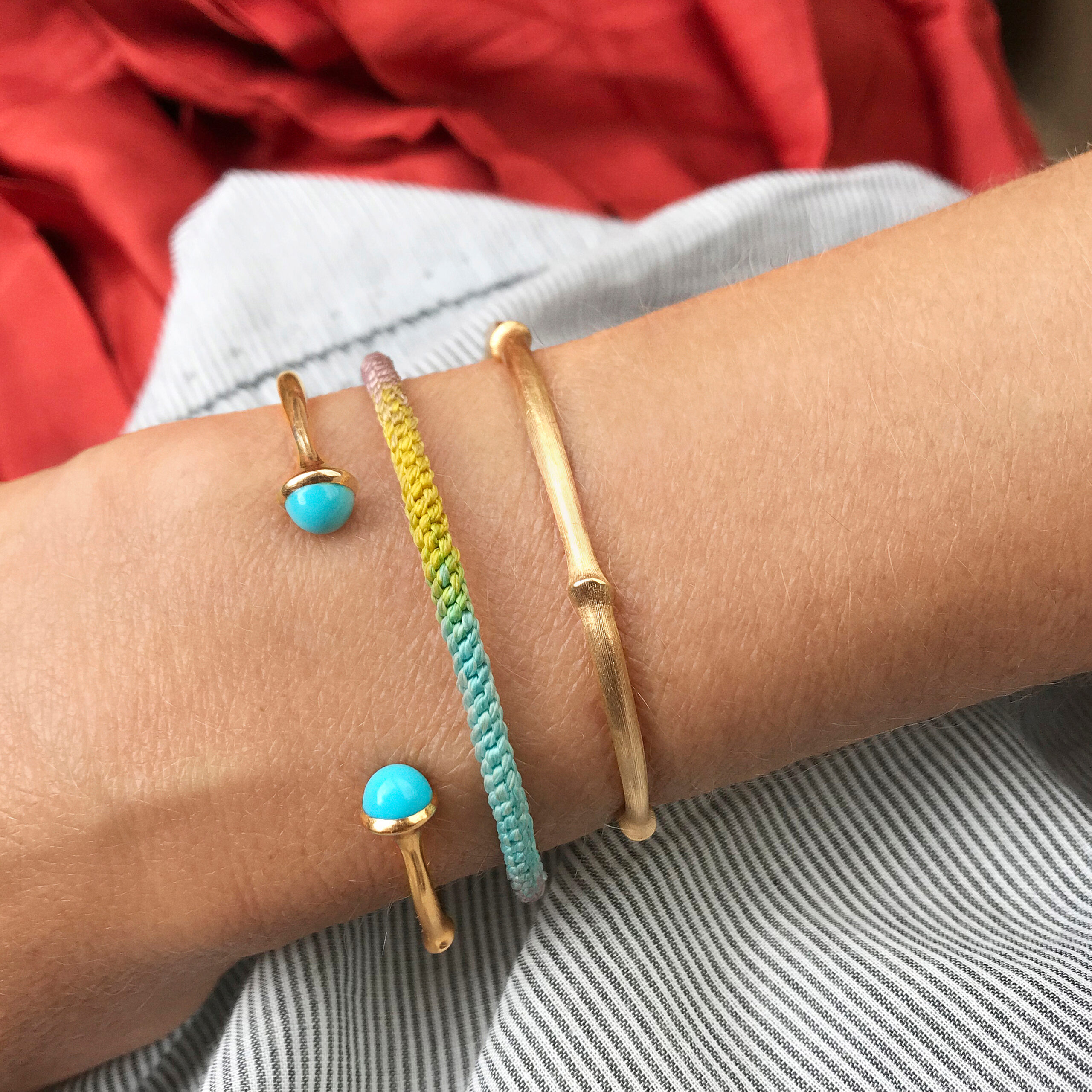 Nature bangle in 18kt satinized yellow gold with turquoise cabochon
