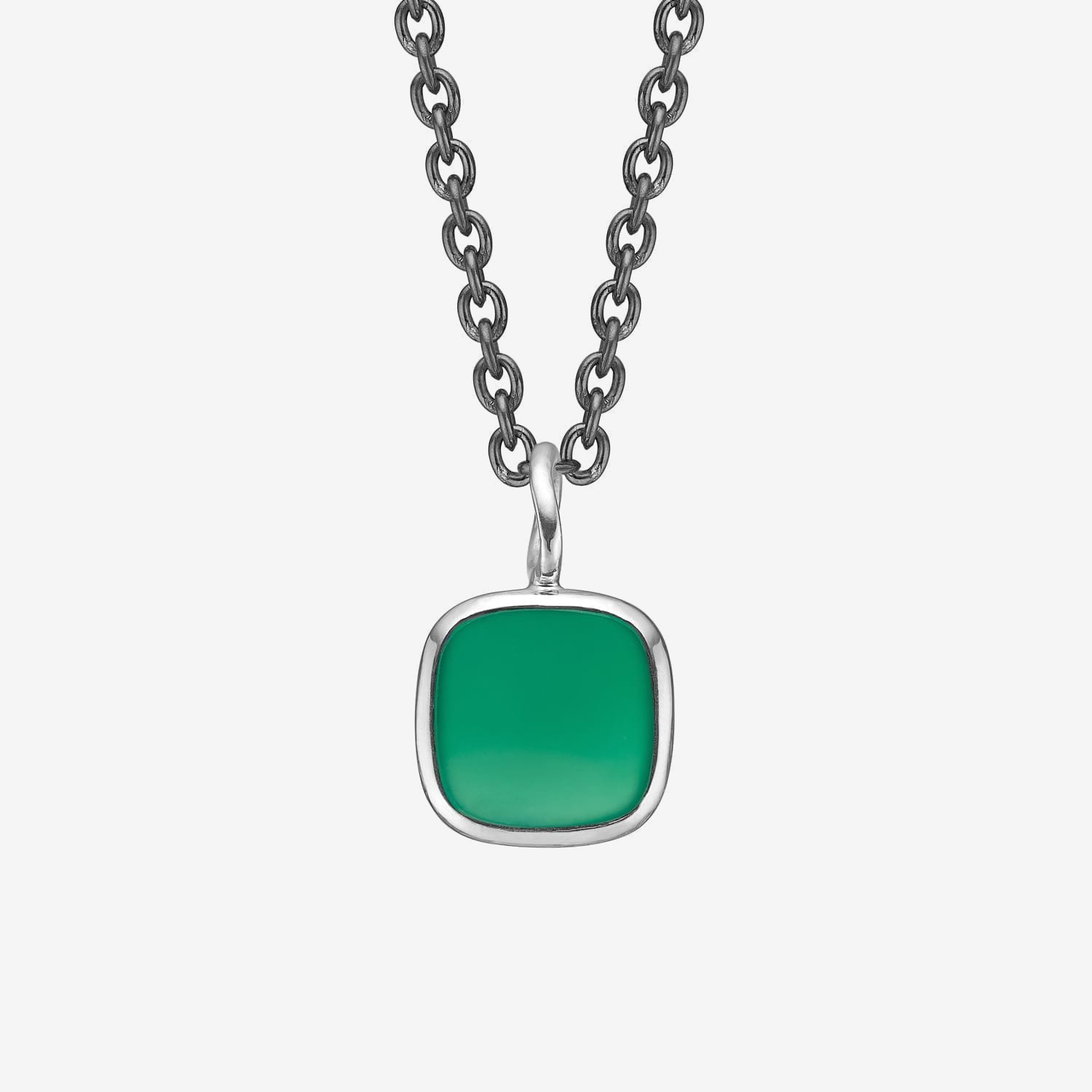 Hand forged pendant in 925 Sterling silver with green onyx