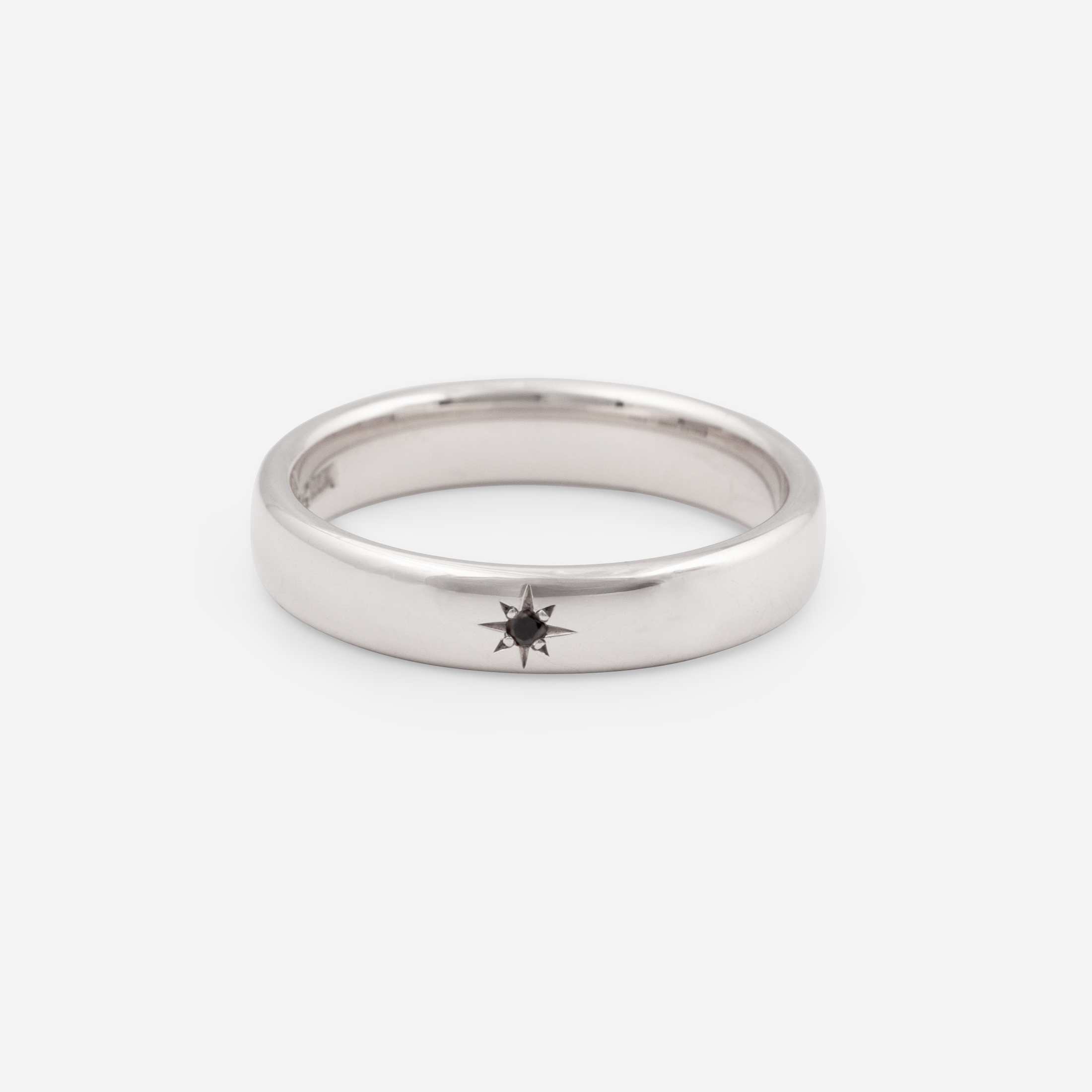 Handmade in Stockholm, Sweden from recycled 18k white gold with a 0.01ct star-set brilliant cut black diamond.