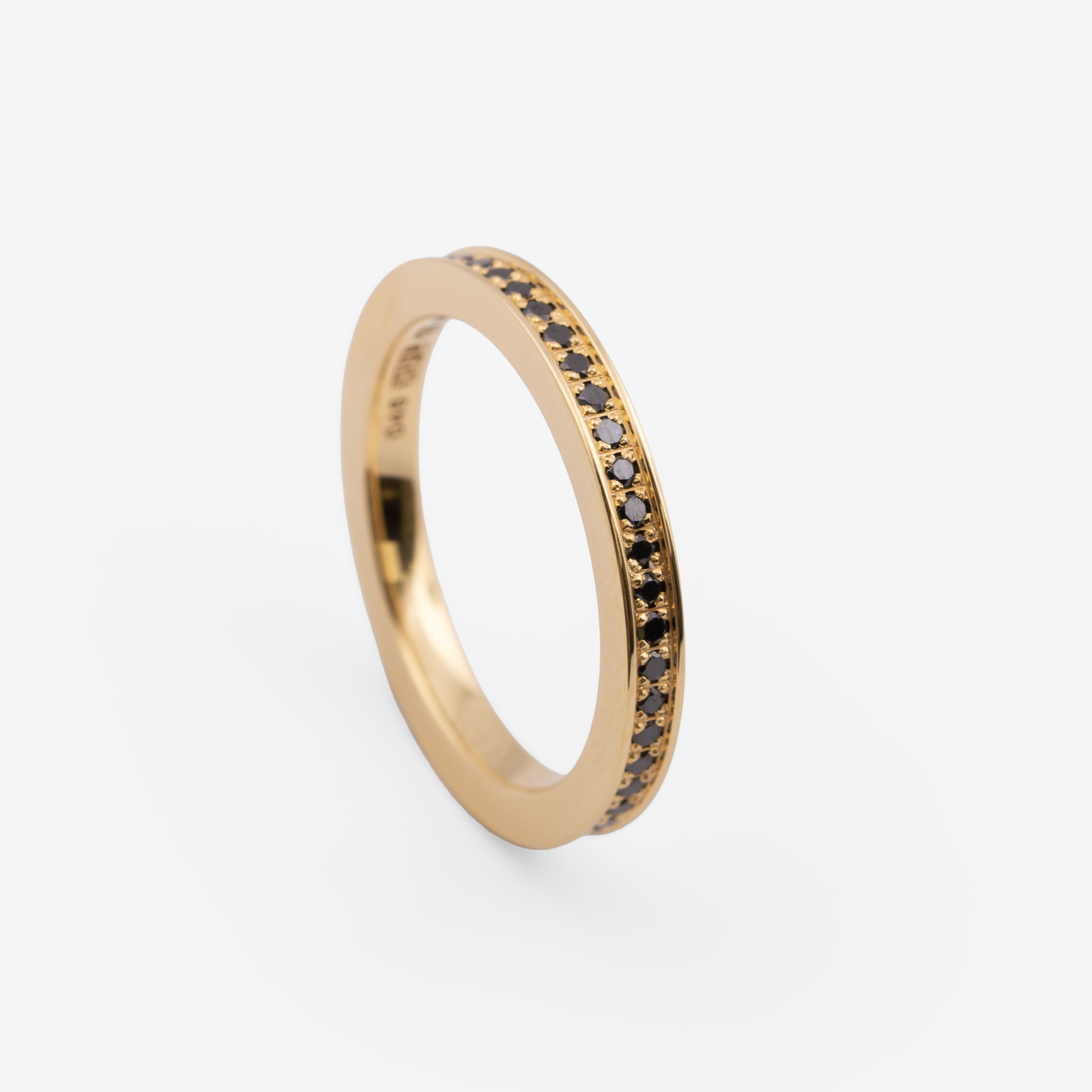Handmade ring in recycled 18k gold with 46 0.01ct brilliant cut black diamonds.(Exact amount of stones vary depending on ring size)