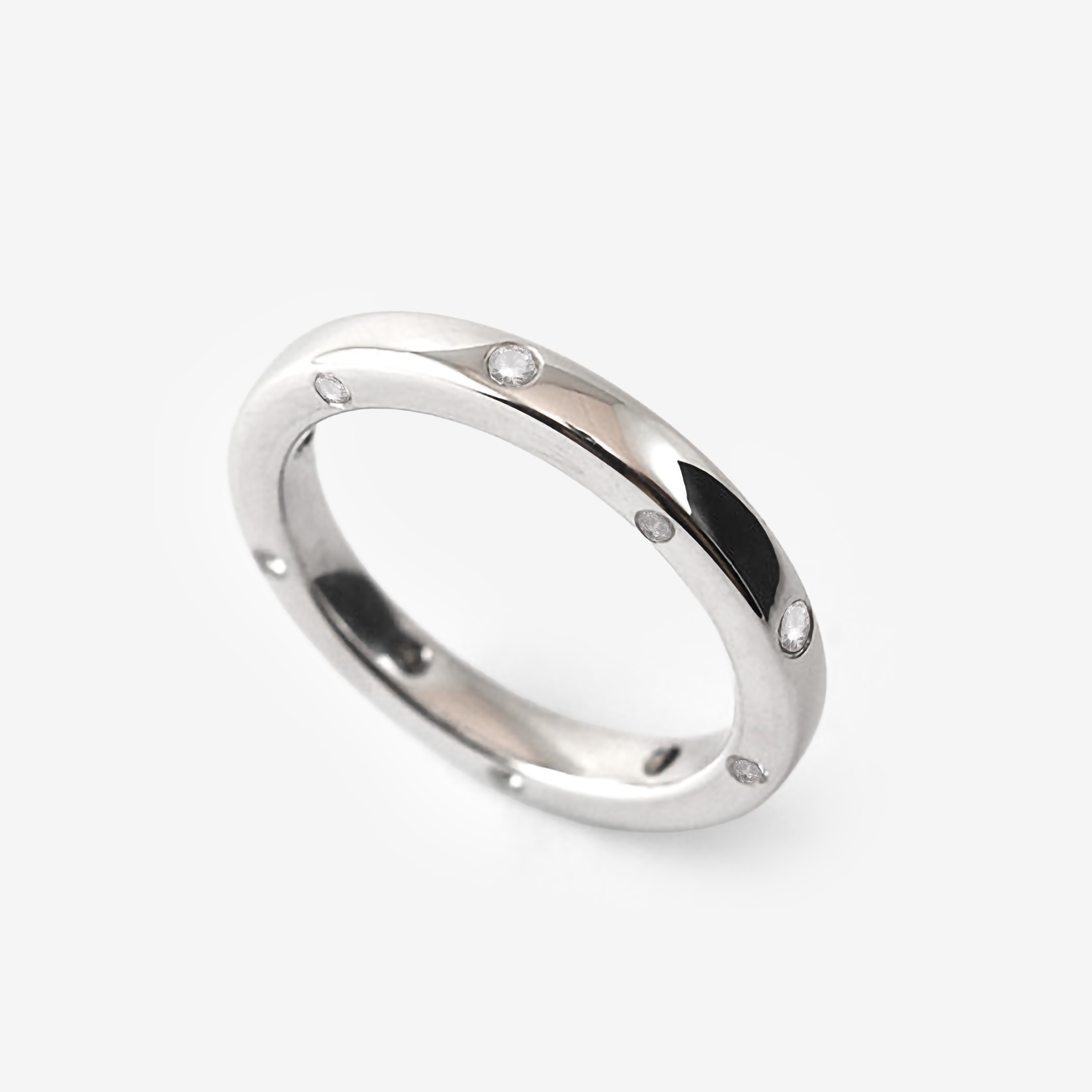 Handmade ring in recycled 18k white gold with ten brilliant cut diamonds.