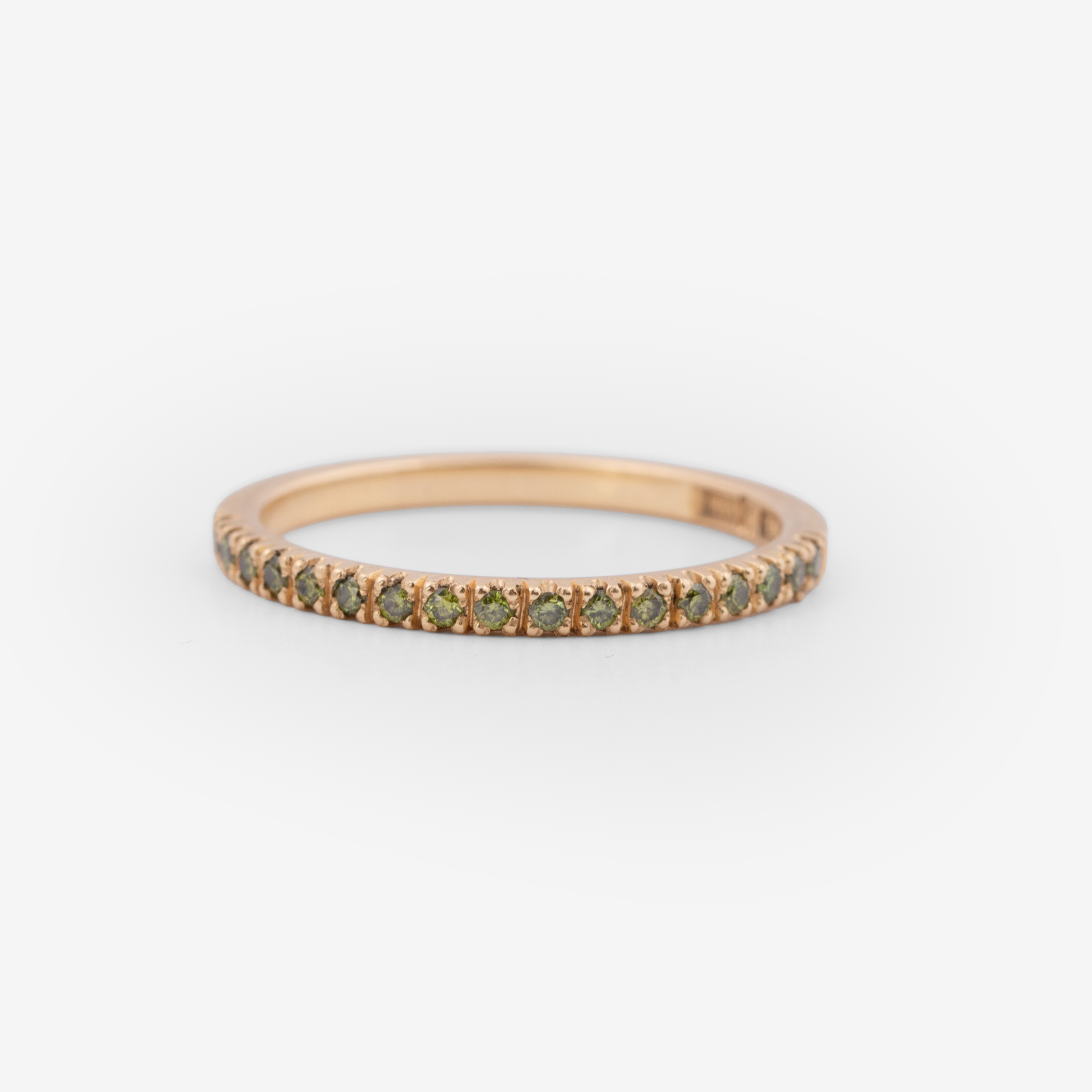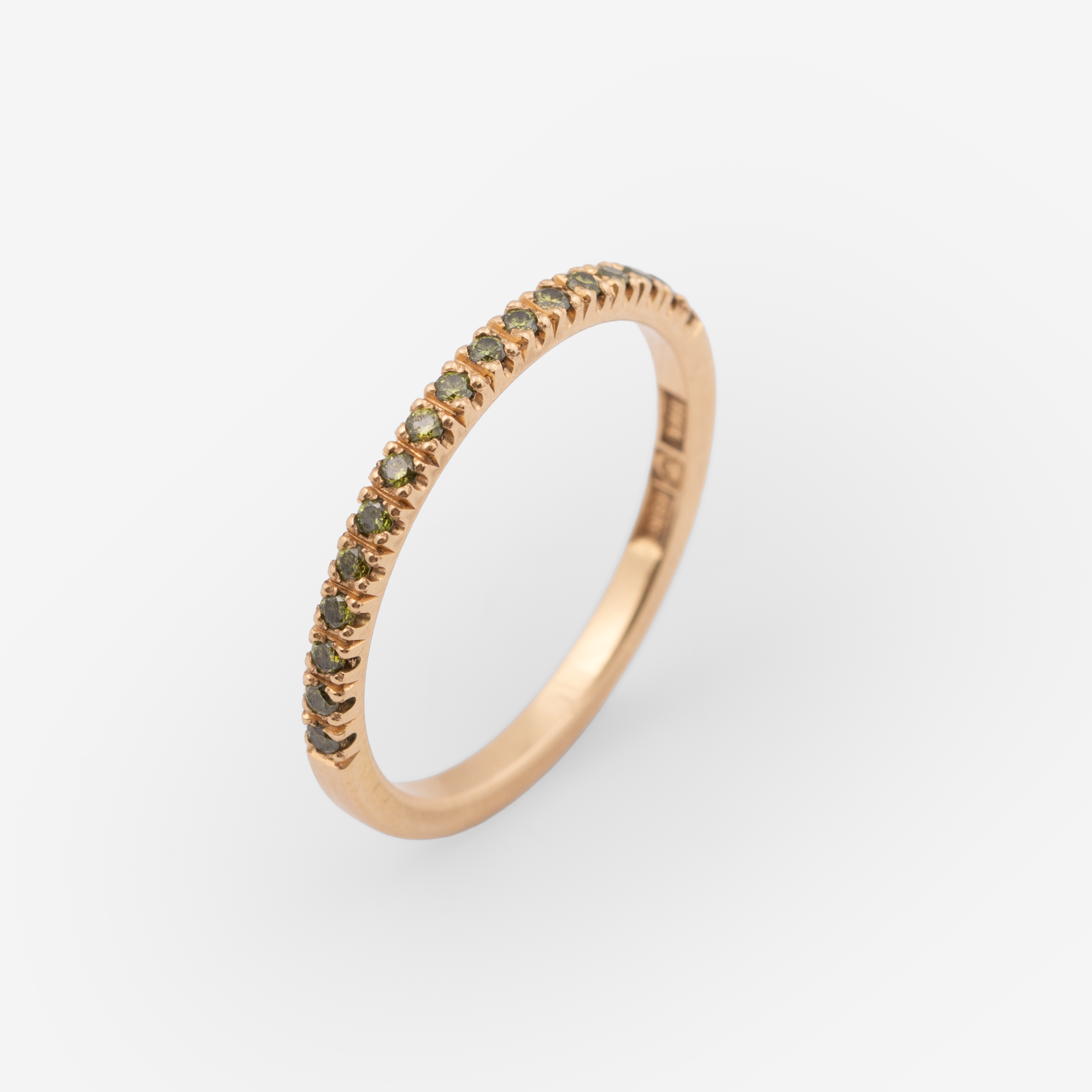 Handmade ring in recycled 18k gold with 0.01ct brilliant cut olive green diamonds.