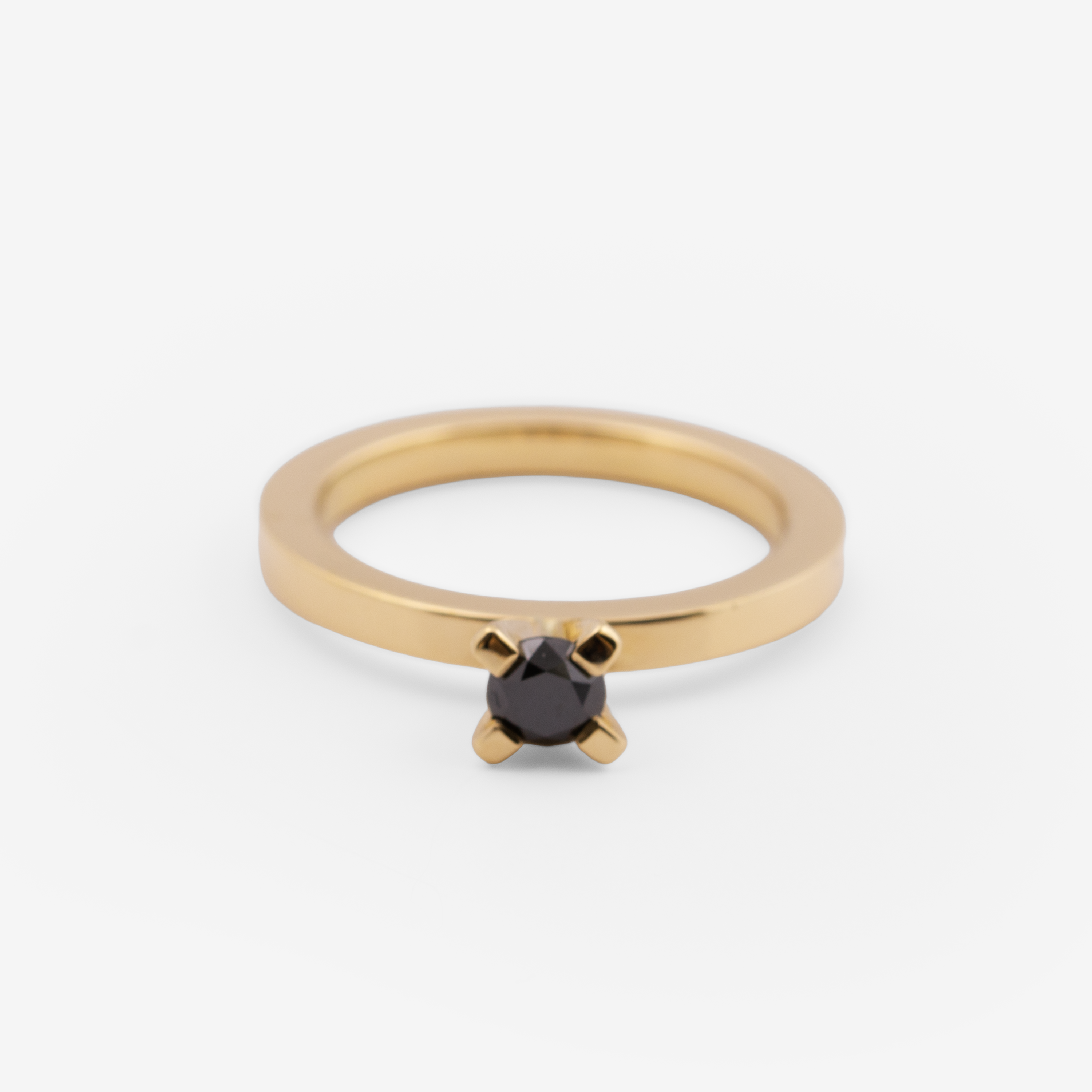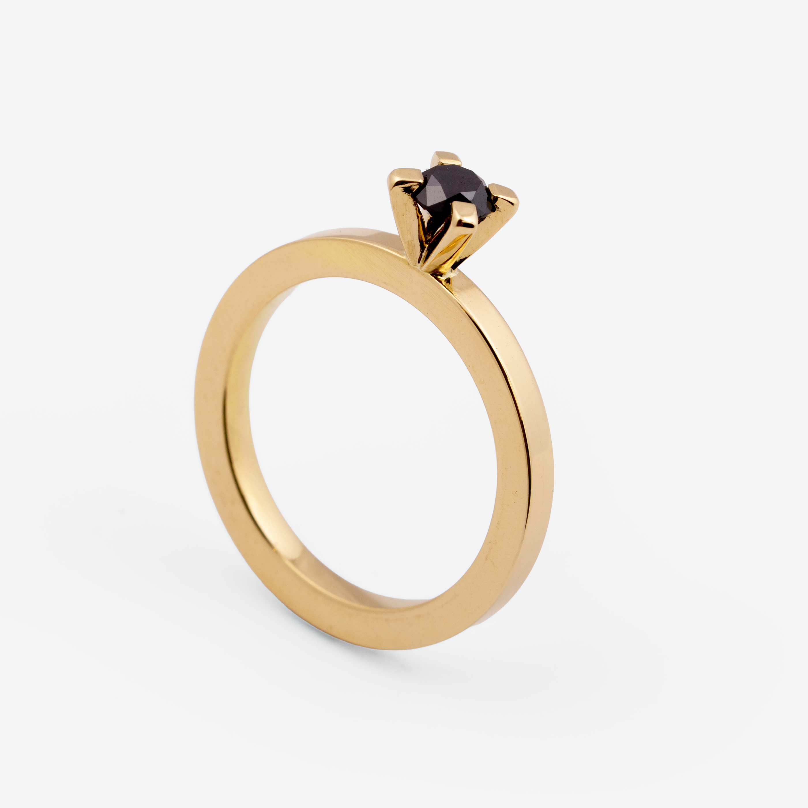 Handmade ring in recycled 18k gold with 0.35ct brilliant cut black diamond.