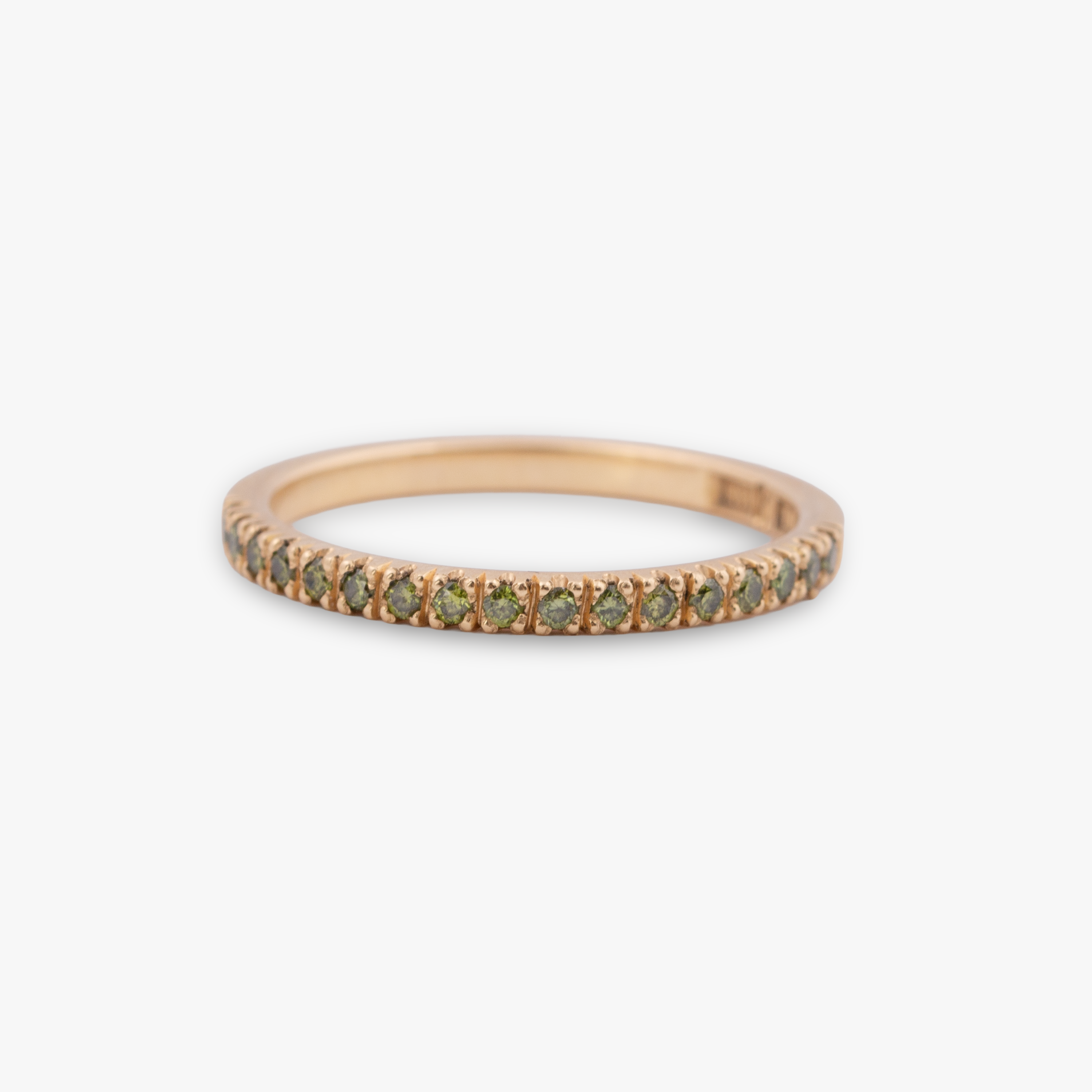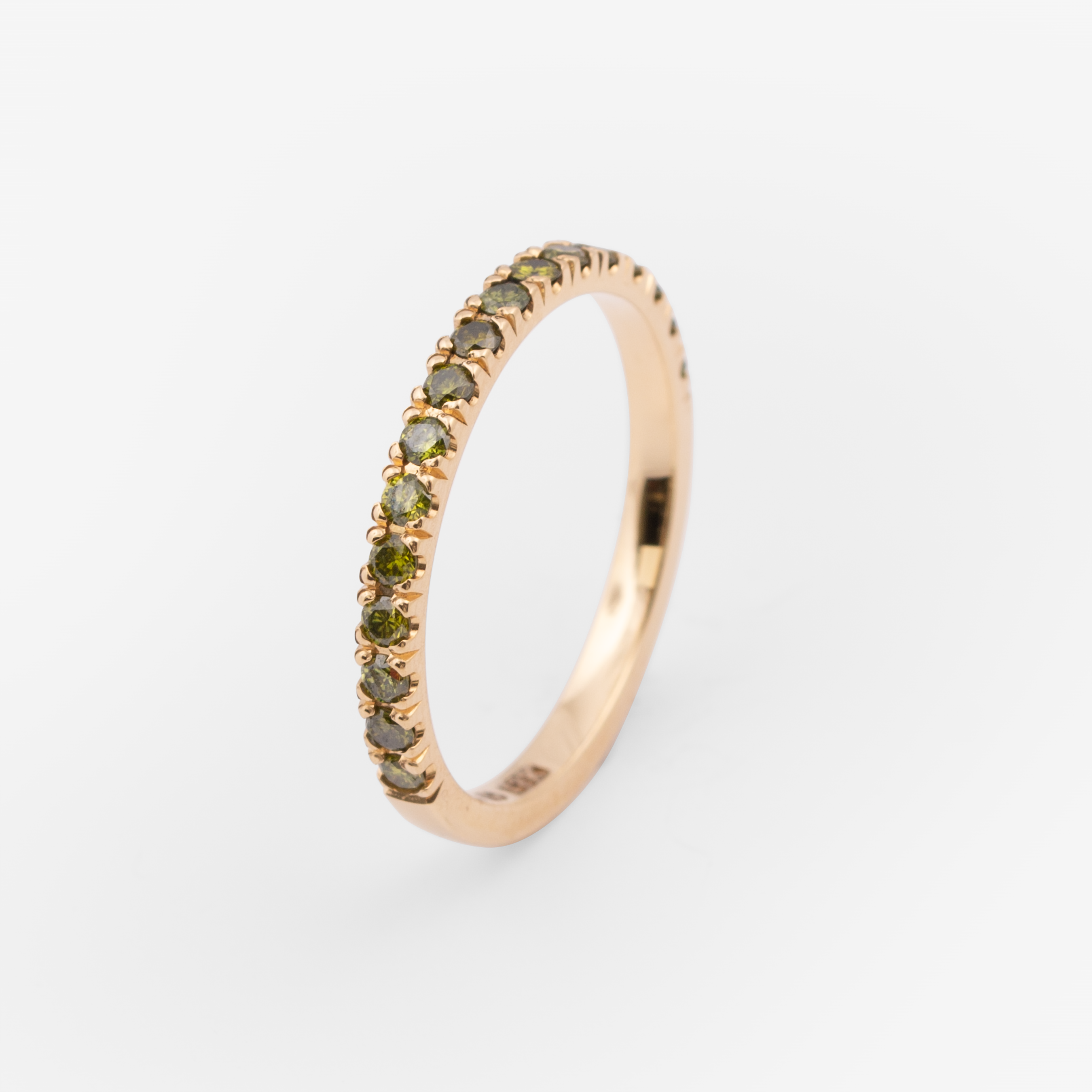 Handmade ring in recycled 18k gold with 0.02ct brilliant cut olive green diamonds.