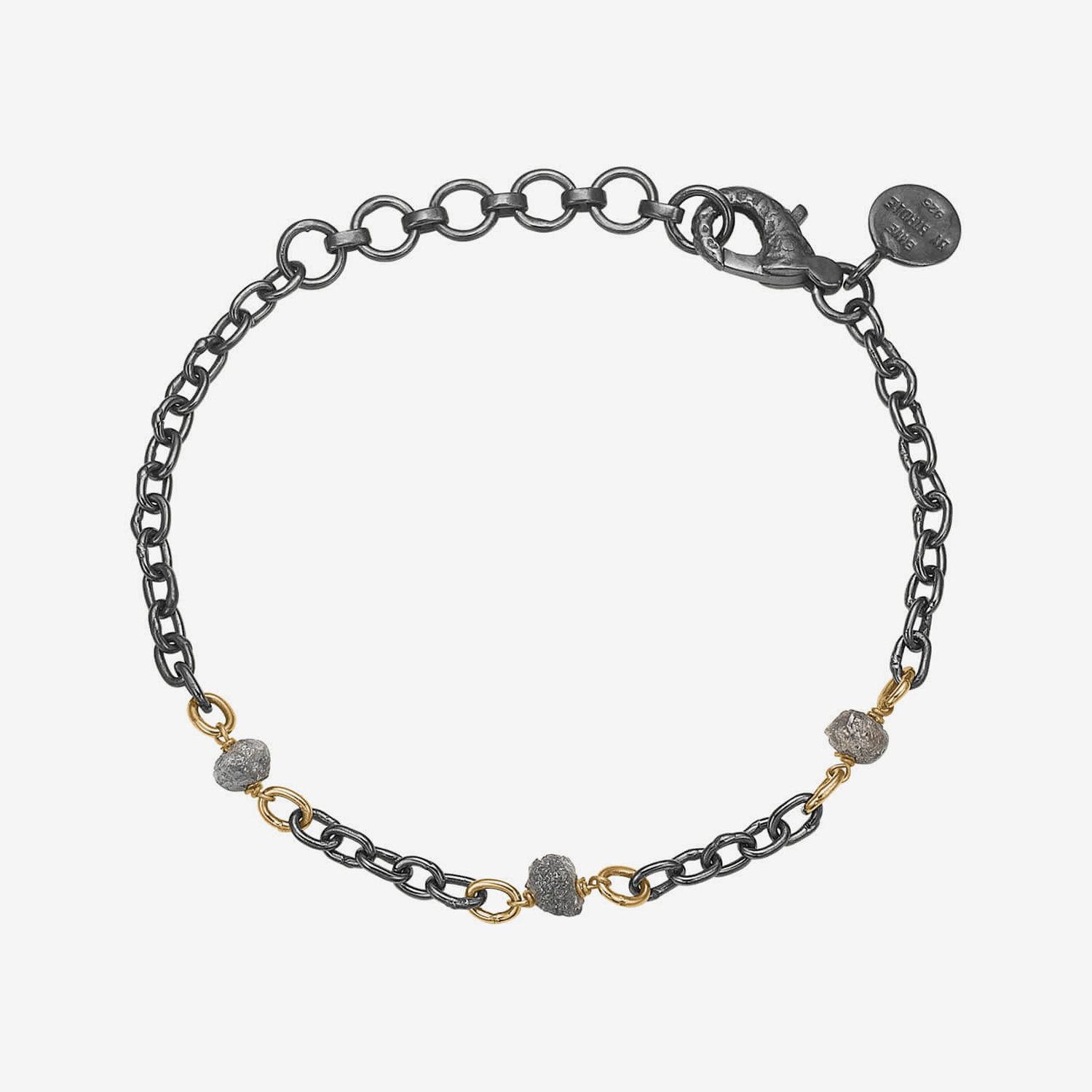 Handgjort armband i oxiderat 925 sterling silver och 14k guld med 3st rådiamanter, totalt 2.2ct
