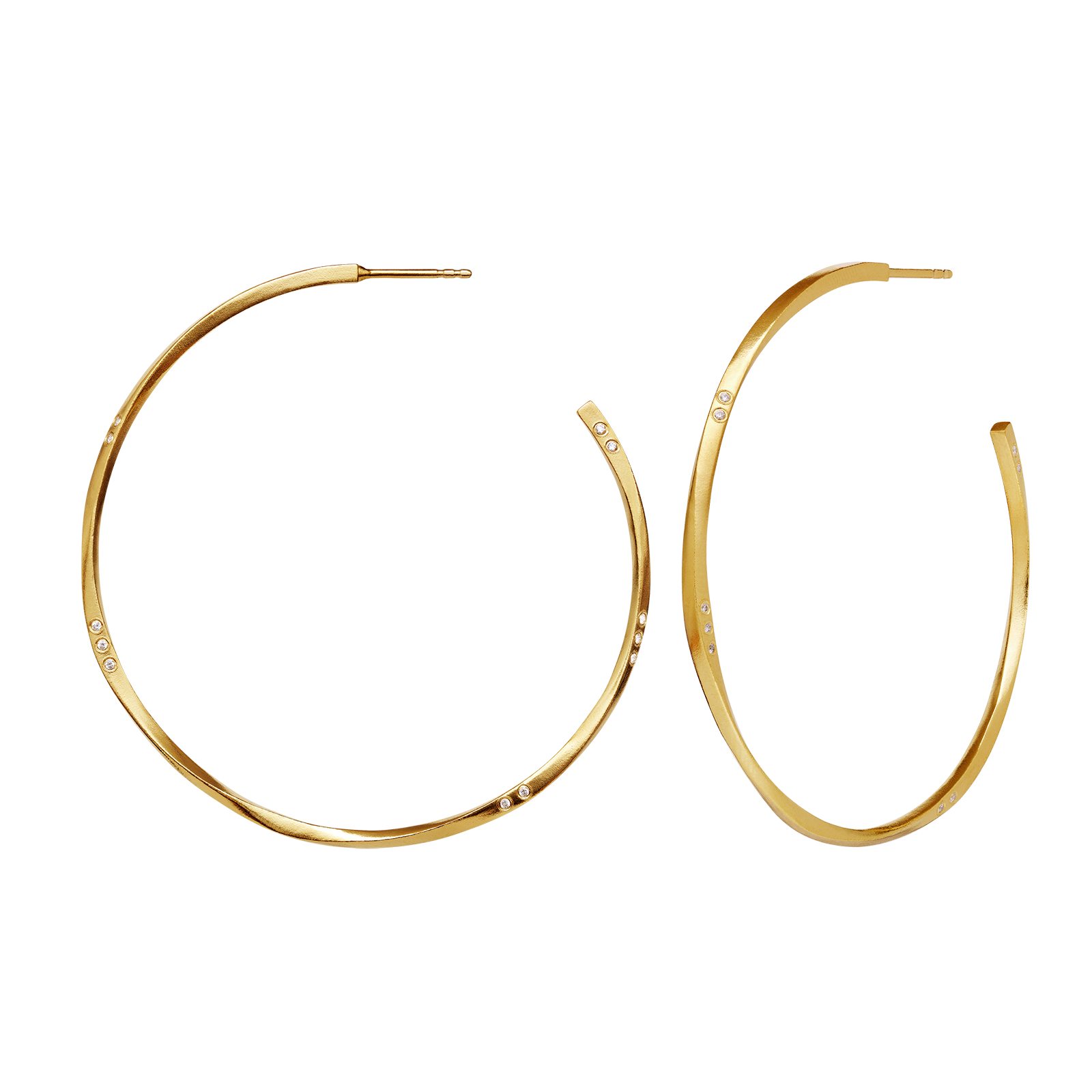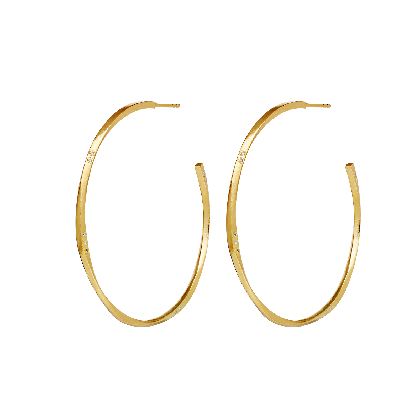 Örhängen i 18k guldpläterat återvunnet sterling silver 925 med kubisk zirkonia Mått: Ø 52mm, tjocklek: 2mm