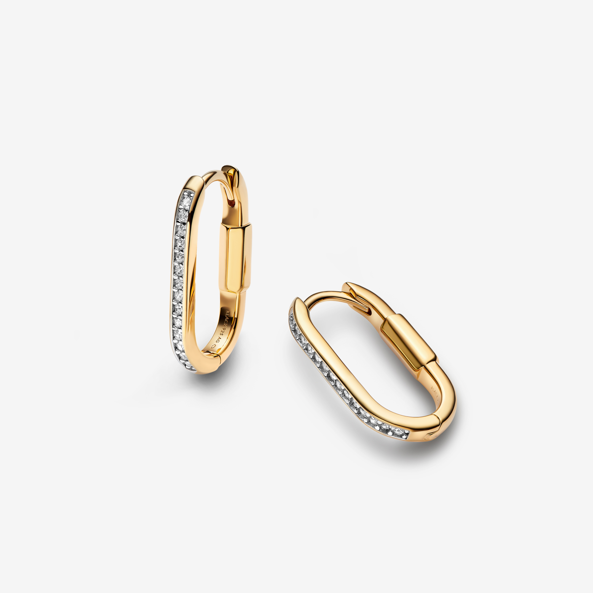 Örhänge i 18k guldpläterat återvunnet sterling silver med vit zirkonia. Hexagonformad detalj på baksidan av örhänget för en industriell look.