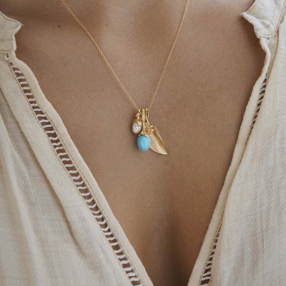 Leaves Pendant 3cm – blad hänge i 18k gult guld