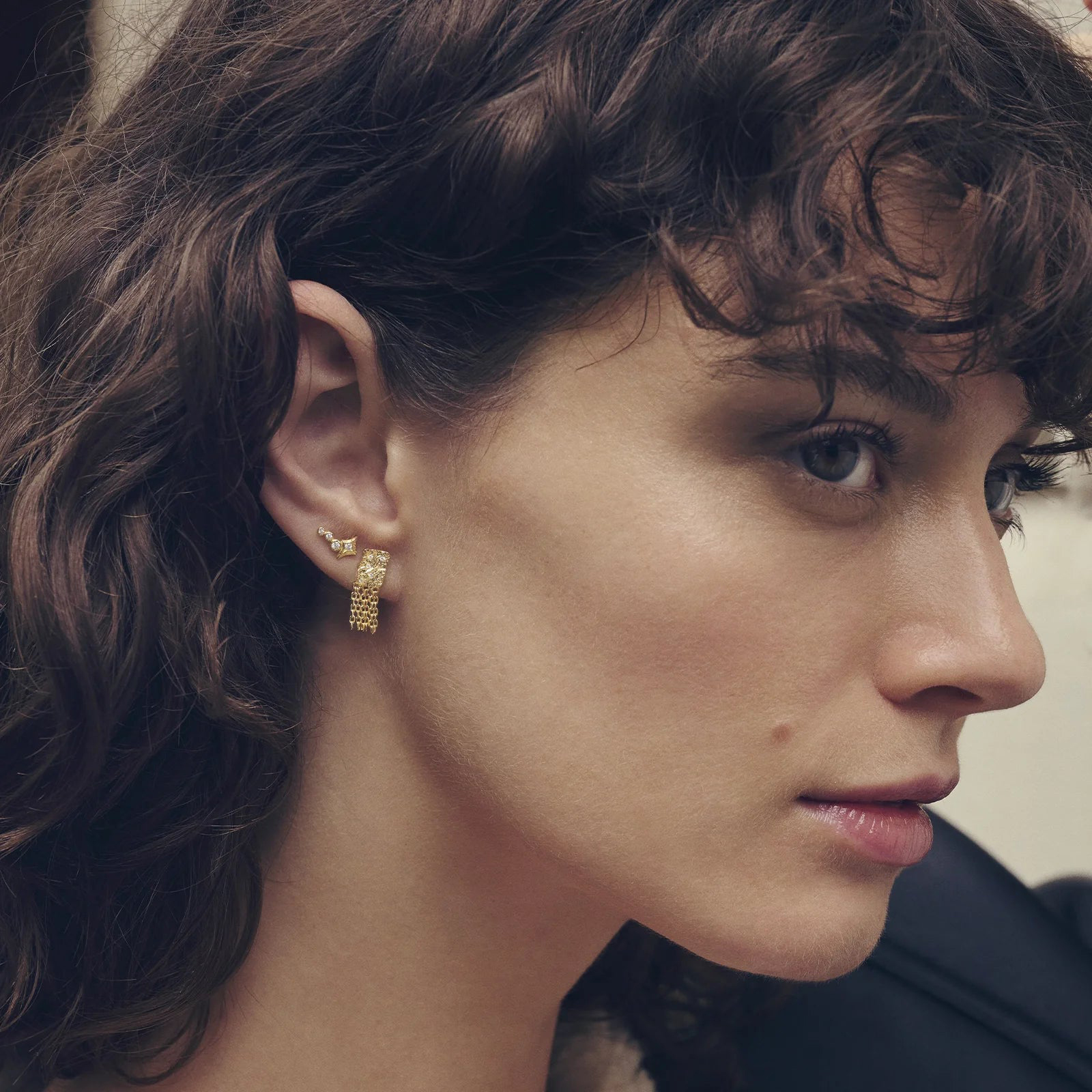 Örhängen i 18k guldpläterat återvunnet 925 Sterling silver med vit zirkonia Mått: L 15mm B 5.7mm