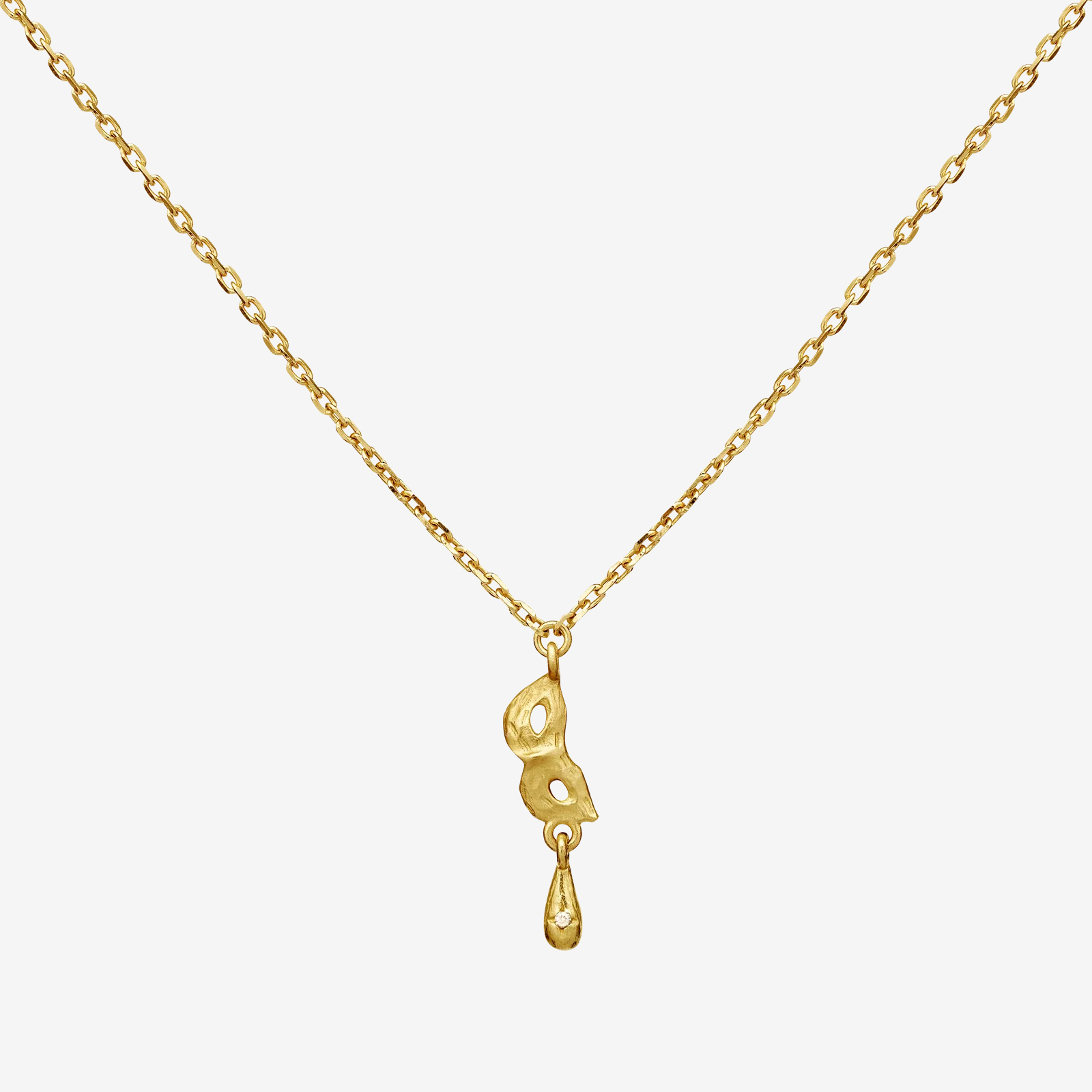 Romeo-halsbandets maskformade hänge med en tår symboliserar passion och mystik – en hyllning till kärlekens komplexitet. Tillverkat i återvunnet 925 sterlingsilver, pläterat med 18k guld och prytt med en champagnezirkonia.