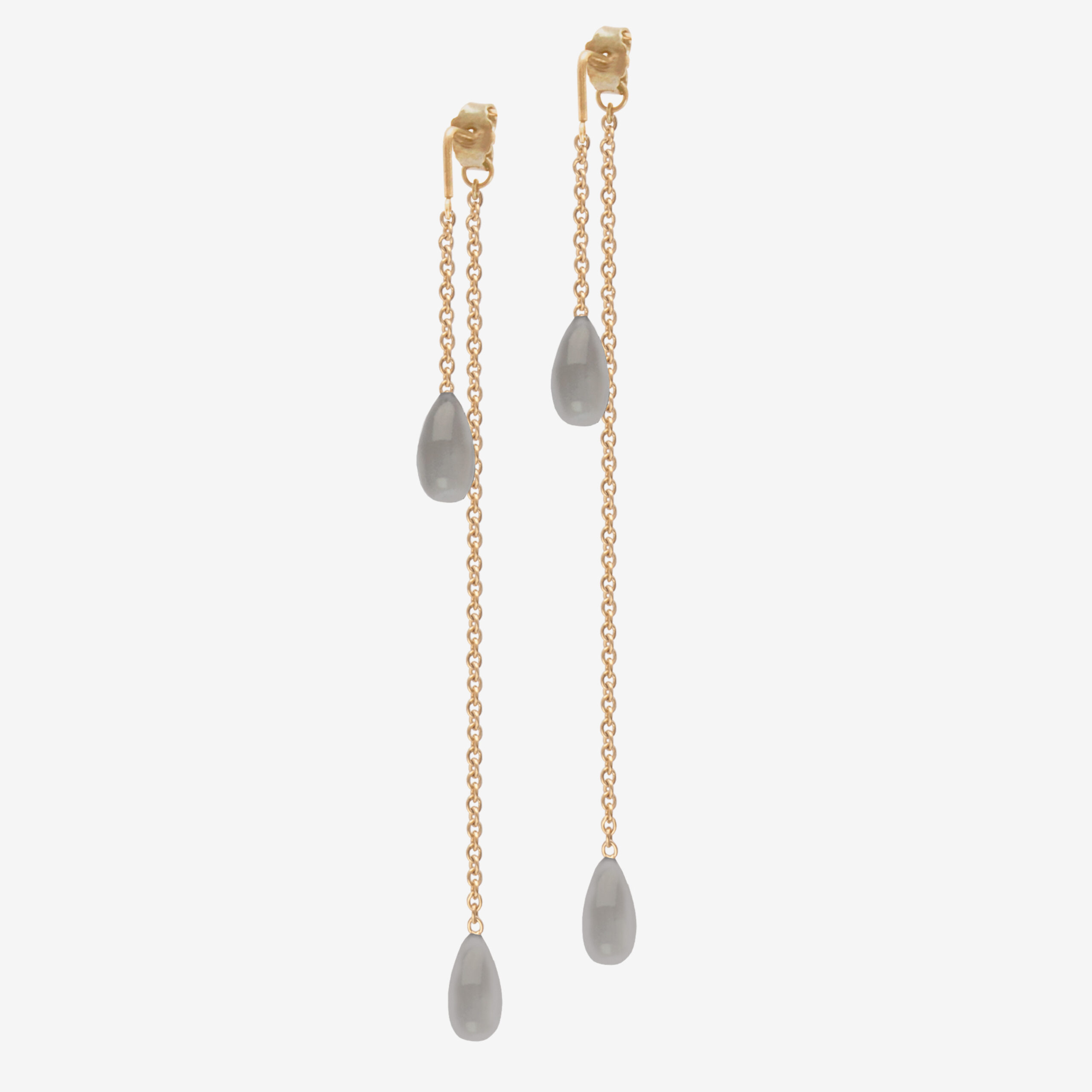 Örhängen i 18k guldpläterat 925 sterling silver med 2x grå månsten. Storlek sten: 10x5mm