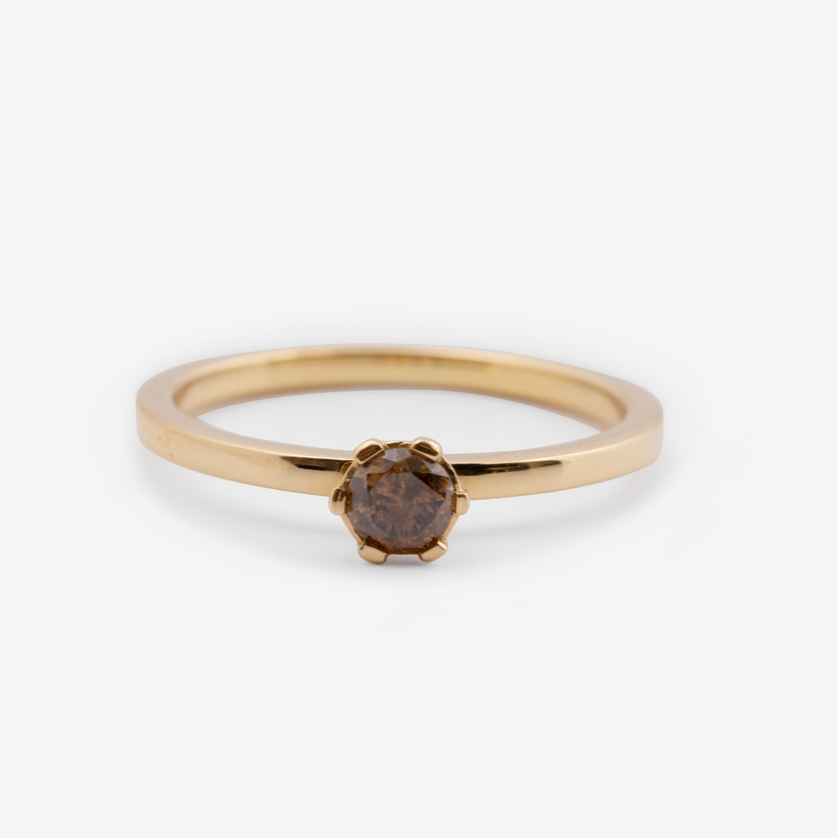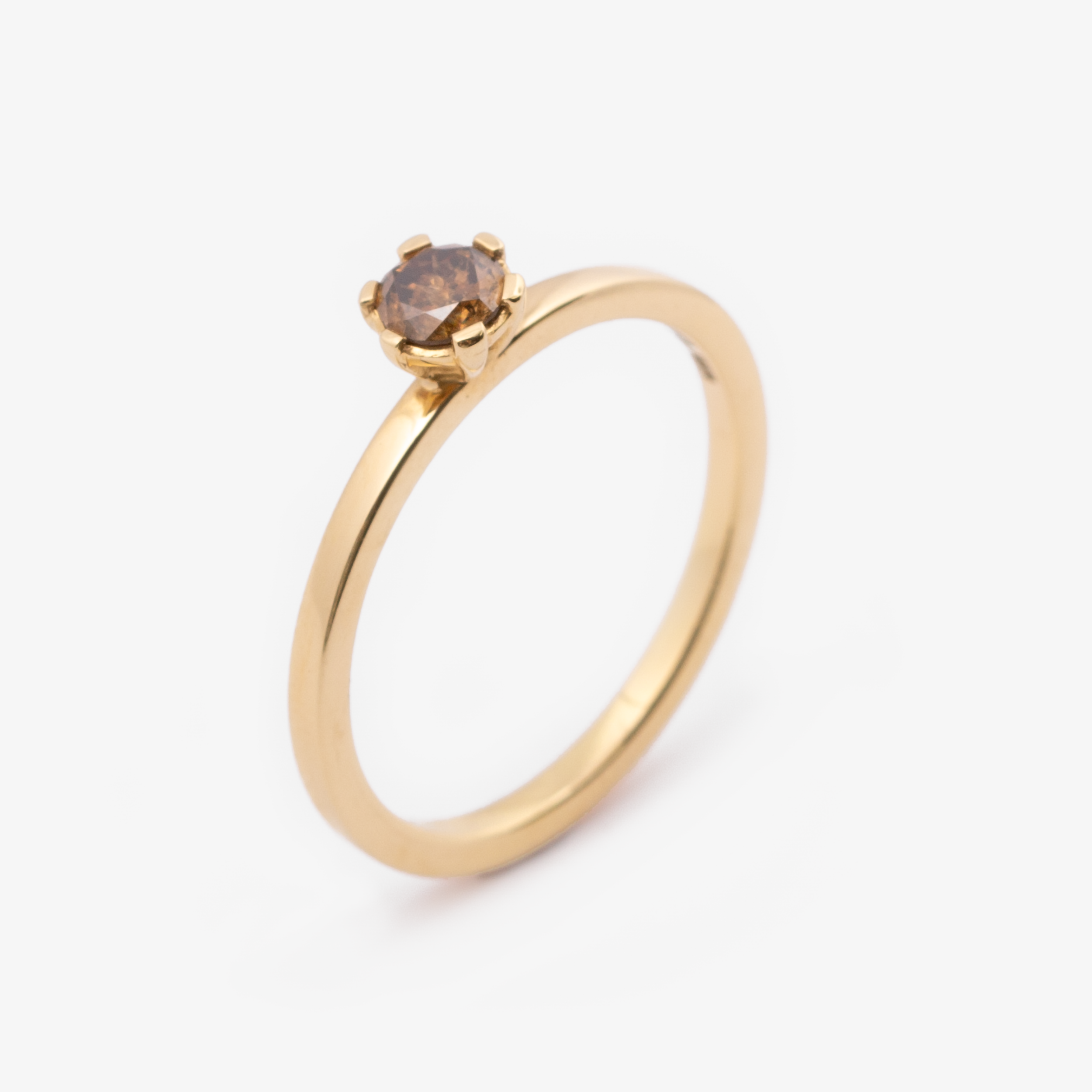 Handgjord ring i återvunnet 18k guld med 0.25ct briljantslipad coffee diamant.